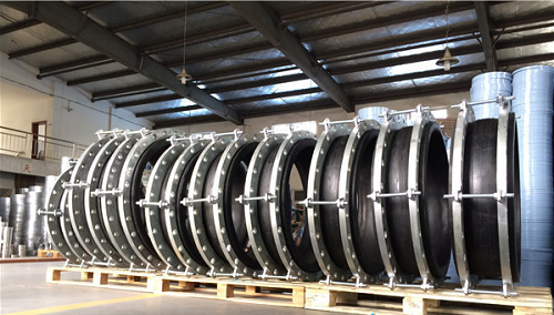 4、如可曲撓橡膠接頭架空使用可配彈性支架,安裝時螺栓要用對角法上緊。