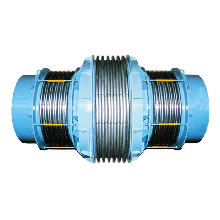 直管壓力平衡型波紋補(bǔ)償器用途:該伸縮器的兩端各有一個(gè)工作波紋管,中間有一個(gè)平衡波紋管,伸縮器通過(guò)受力構(gòu)件(大拉桿或舌管)來(lái)承受內(nèi)壓推力。因此管系只需中間固定支架。此類伸縮器只能吸收軸向位移。